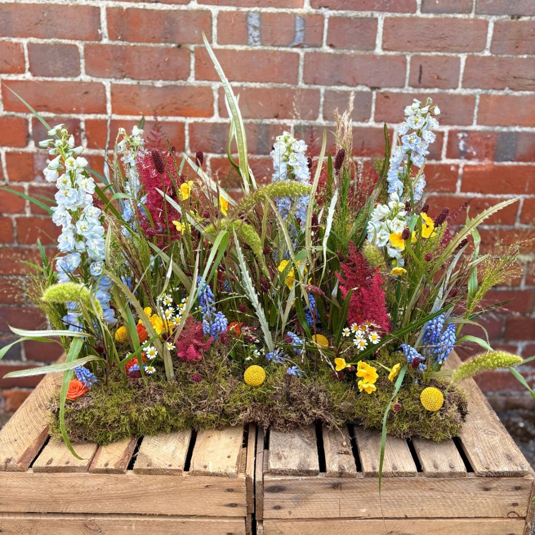 Our meadow-style pillow combines delicate, wildflower-inspired blooms for a serene and personal expression of remembrance.